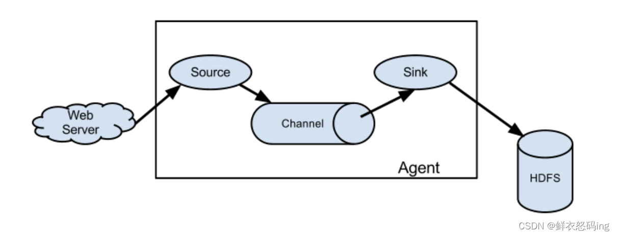 Flume 运行的核心是 Agent。Flume 是以 agent 为最小的独立运行单位。一个 agent 就是一个 JVM。它是 一个完整的数据收集工具,含有三个核心组件,分别是 source、 channel、 sink。通过这些组件, Event 可以从一个地方流向另一个地方。如下图所示: