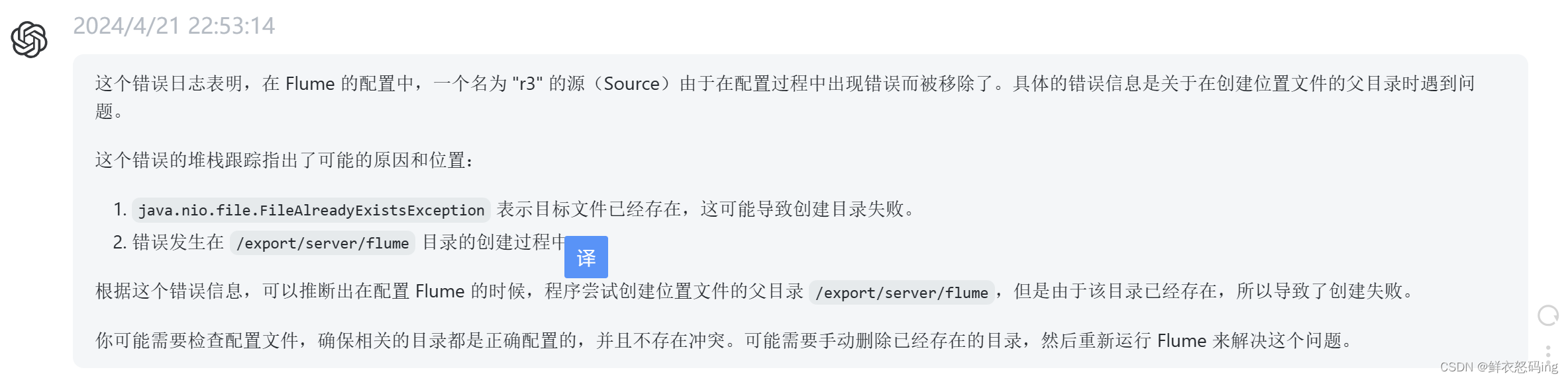 Caused by: java.nio.file.FileAlreadyExistsException: /export/server/flume