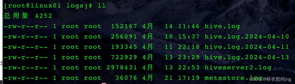 注意! log4j 日志框架每天凌晨会自动把前一天的 hive.log 的文件改名,后缀加上日期,这点对我们监控空间极不友好,假如我们监控的是 hive.log,然而 hive.log 会自动更名 hive.log.2024-xx-xx,监测的文件名发生改变,而 inode 不变,然而 json 文件中记录的绝对路径仍然是 hive.log,此时的 hive.log 是新的文件,inode 变化,就无法实现断点续传。