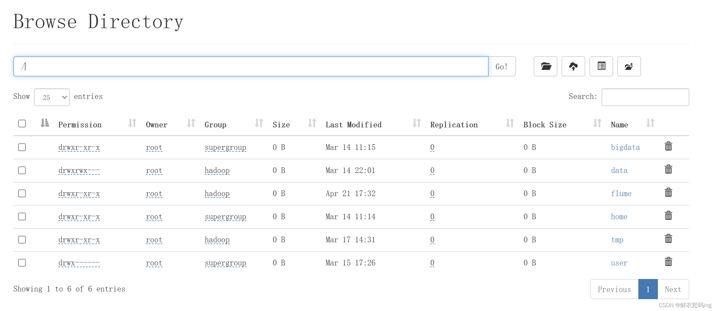 进入 linux01:9870 查看 hdfs 文件目录, 确实上传成功了。