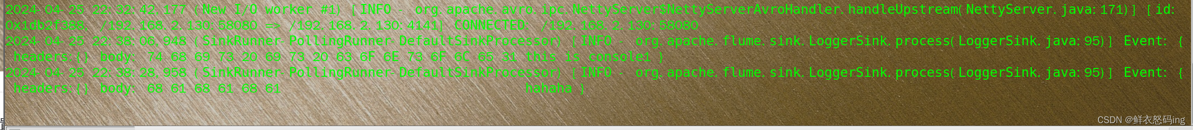 以上配置完后,在 linux01 nc localhost 44444,然而
