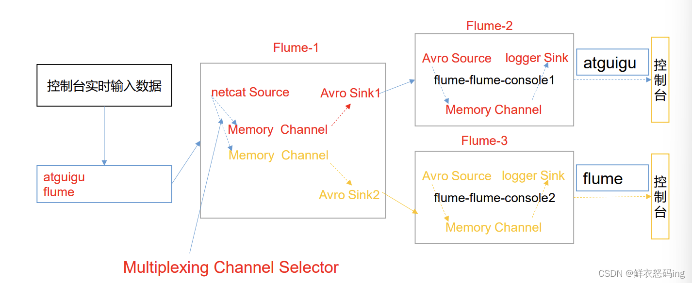 1 配置 1 个 netcat source,1 个 sink group(2 个 avro sink), 并配置相应的 ChannelSelector 和 interceptor。