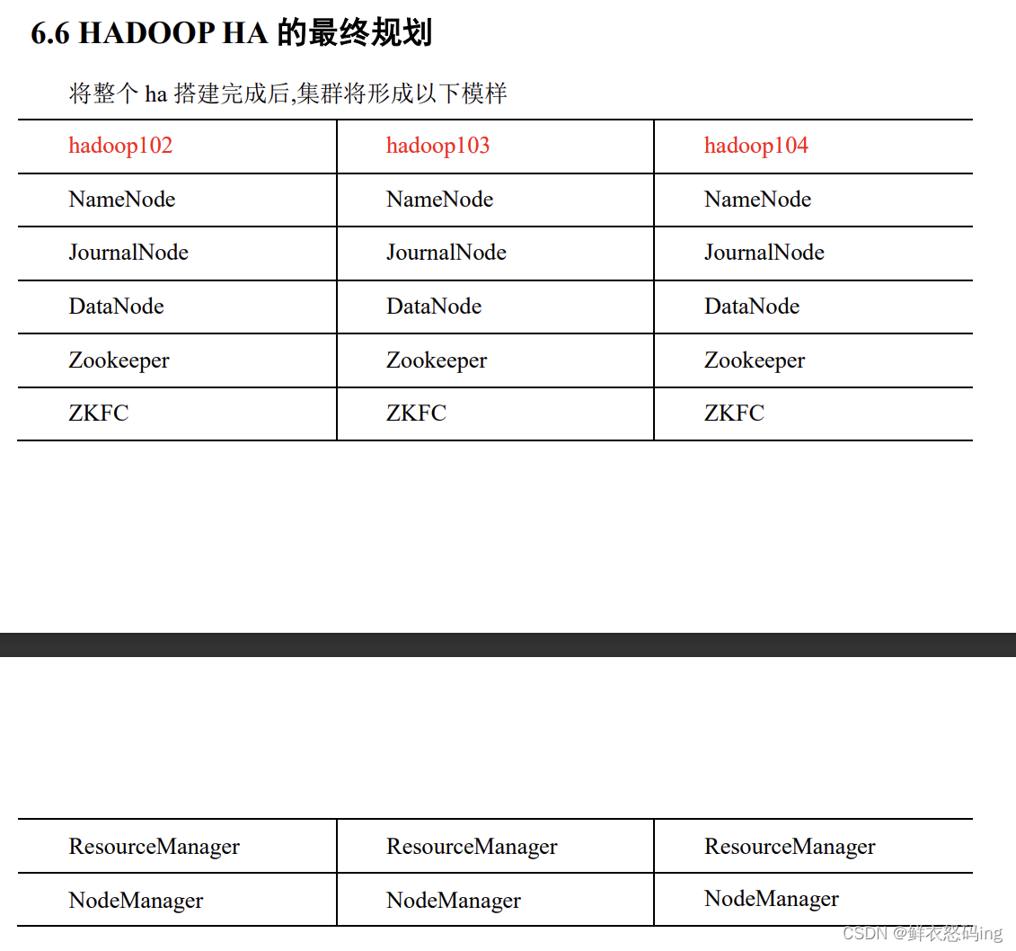 2)实现高可用最关键的策略是消除单点故障(传统的主从模式集群单个节点发生故障会影响整个集群)。HA 严格来说应该分成各个组件的 HA 机制:HDFS 的 HA 和 YARN 的 HA。