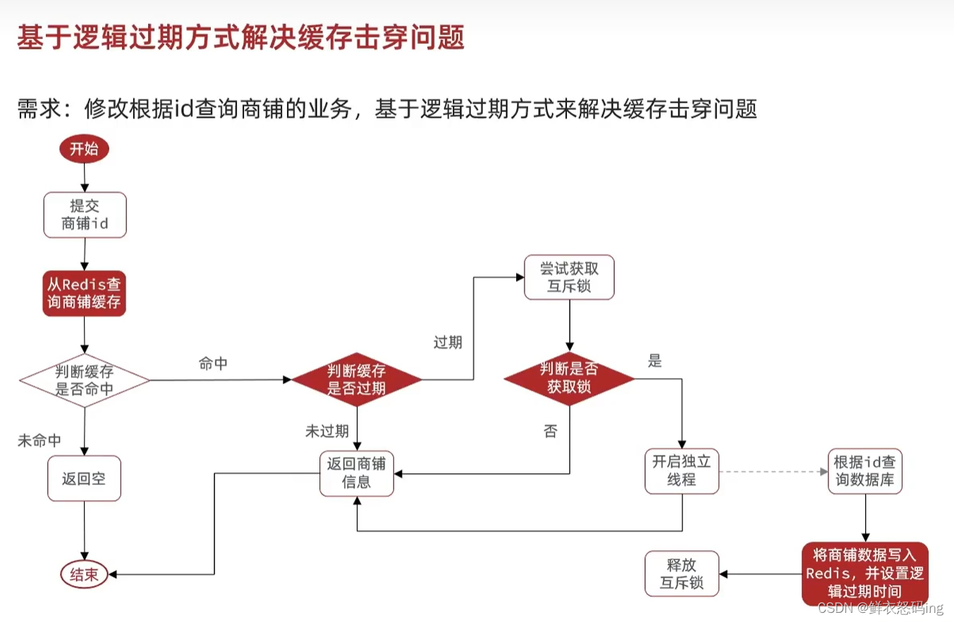 逻辑过期并不是设置 TTL,而是为缓存添加一个逻辑上的时间字段,判断该字段是否过期,过期则缓存重建