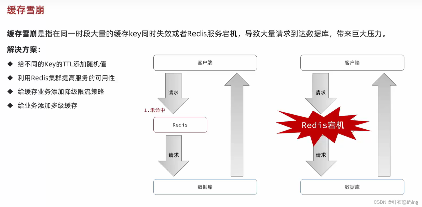 - 同一时段的大量 key 同时失效或 redis 宕机,导致大量请求直接打到数据库