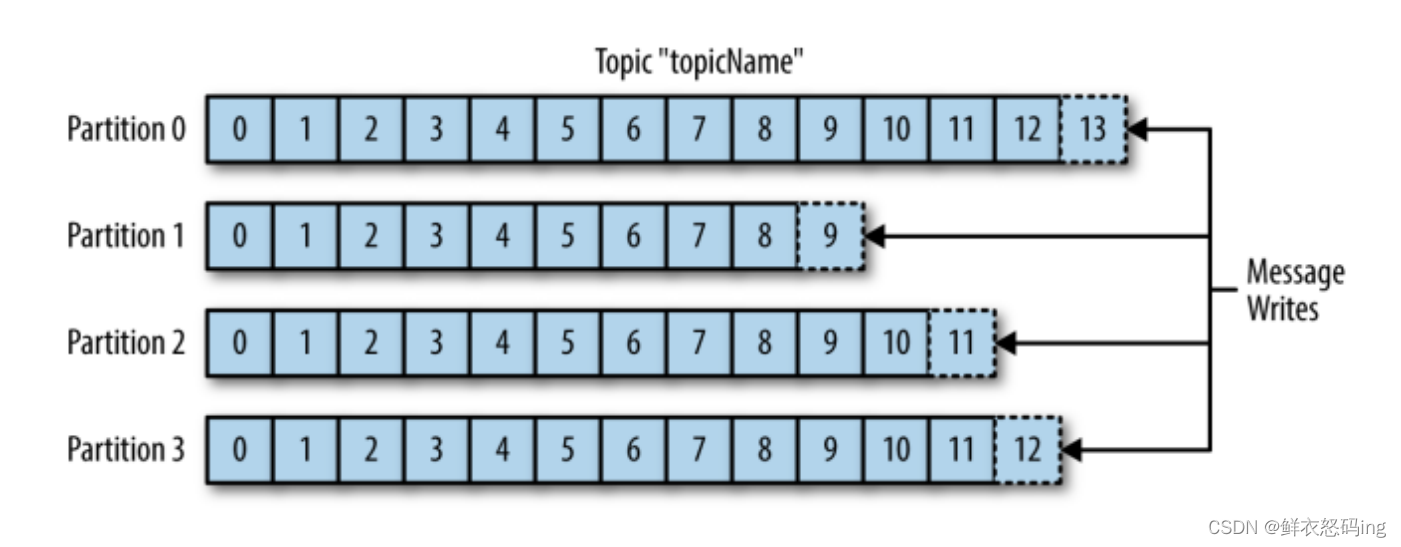 Kafka 的消息通过 Topics(主题) 进行分类,Kafka 中有两个固定的,用于记录消费者偏移量和事务处理的主题,一个主题可以被分为若干个 Partitions(分区),一个分区就是 一个提交日志 (commit log)。消息以追加的方式写入分区,然后以先入先出的顺序读取。Kafka 通过分区来实现数据的冗余和伸缩性,分区可以分布在不同的服务器上,这意味着一个 Topic 可以横跨多个服务器,以提供比单个服务器更强大的性能。