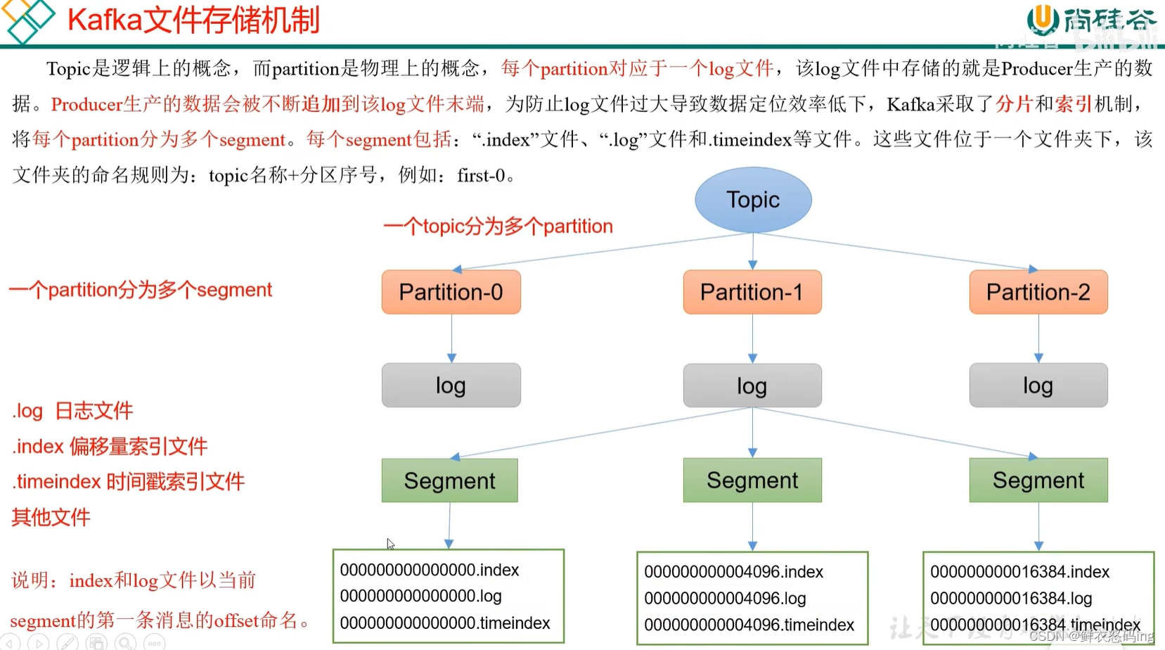 topic 是逻辑上的概念,而 partition 是物理上的概念,每个 topic 包含一个或者多个 partition,每个分区保存部分 topic 的数据,所有的 partition 当中的数据全部合并起来, 就是一个 topic 当中的所有的数据。一个 broker 服务下,有多个 Topic,每个 Topic 可以创建多个分区,broker 数与分区数没有关系; 在 kafka 中,每一个分区会有一个编号,编号从 0 开始。