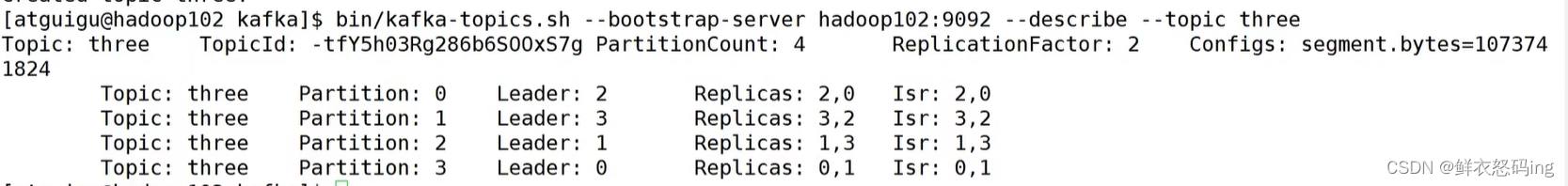 - 如果某一个分区有三个副本因子,就算其中一个挂掉,那么只会剩下的两个中, 选择一个 leader。 如果所有的副本都挂了,生产者如果生产数据到指定分区的话,将写入不成功。 1sr 表示:当前可用的副本。