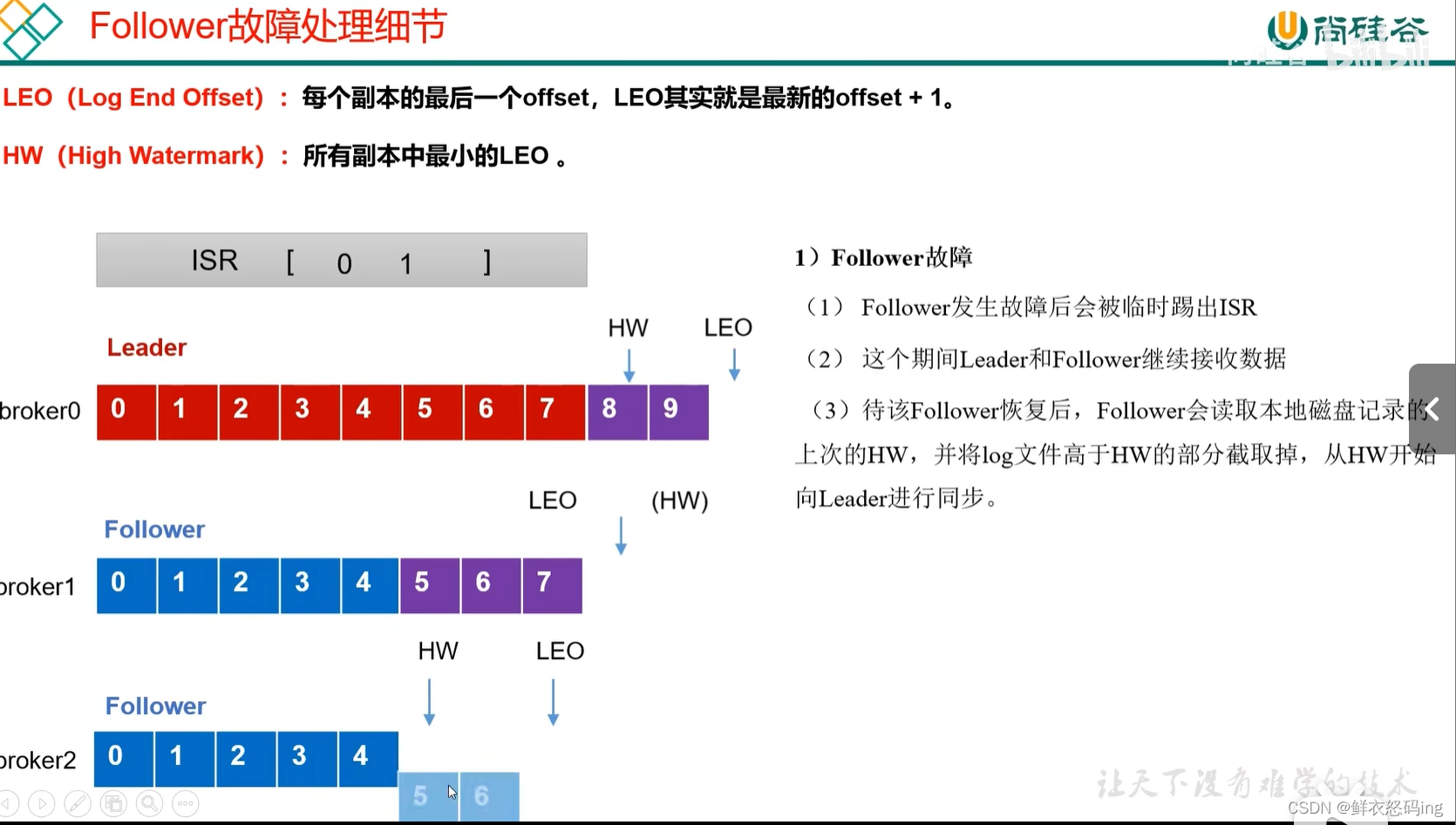 HW 高水位线会随着 follower 的数据同步操作,而不断上涨,也就是说,follower 同步的数据越多,那么水位线也就越高,那么消费者能访问的数据也就越多。