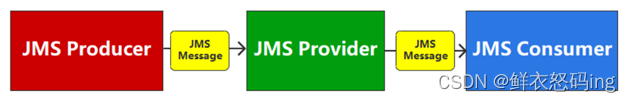 - JMS Producer **:**JMS 消息生产者。所谓的生产者,就是生产数据的客户端应用程序,这些应用通过 JMS 接口发送 JMS 消息。