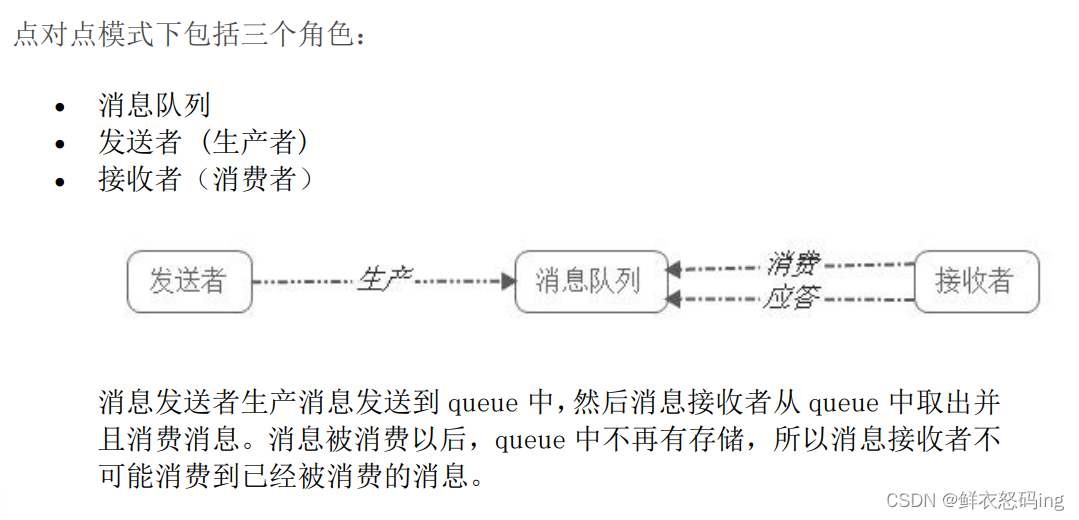 - 接收者在成功接收消息之后需向队列应答成功,以便消息队列删除当前接 收的消息