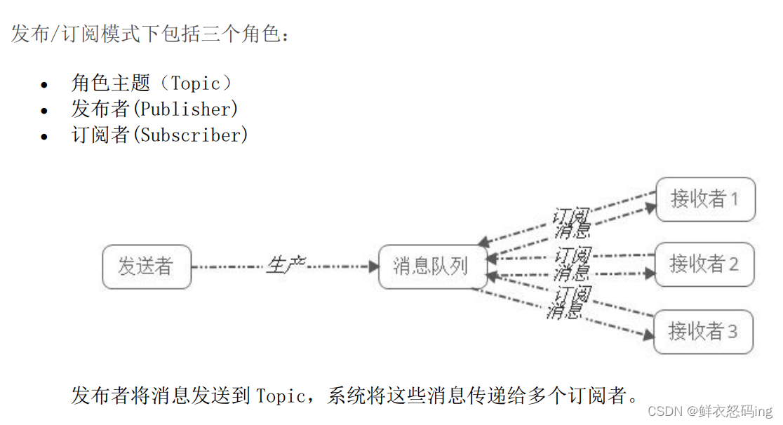- 为了消费消息,订阅者需要提前订阅该角色主题,并保持在线运行;