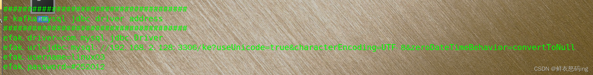 EFAK 需要配置 mysql 的ke 数据库来存储元数据,username 是连接 mysql 的登录用户,名字随便起,和 linux03 服务器无关,需要提前在 mysql 创建好并授权访问。
