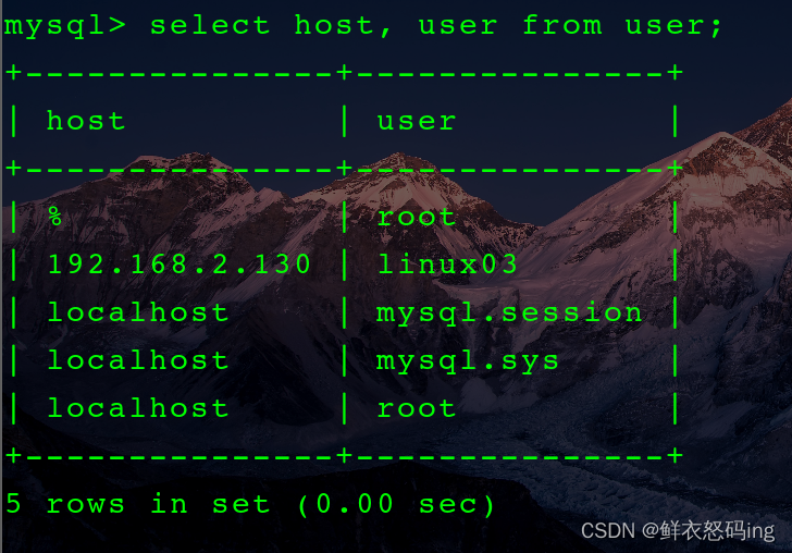 4. 在 linux01 的 mysql 创建名为 linux03 的用户,并授予对 ke 数据库的所有权,并规定只有服务器 linux03 的 ip 地址才能访问。