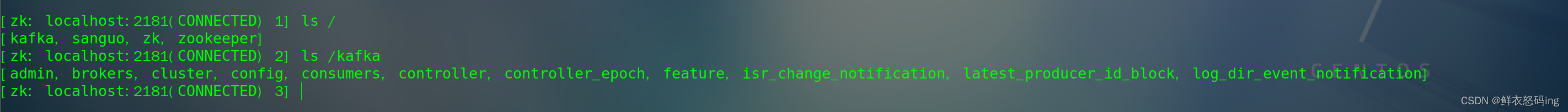 查看 zk 客户端,根节点下已经有了 kafka 节点