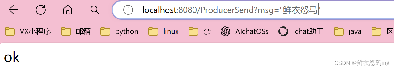 项目启动之后在浏览器访问,kafka 消费者成功接收到数据!