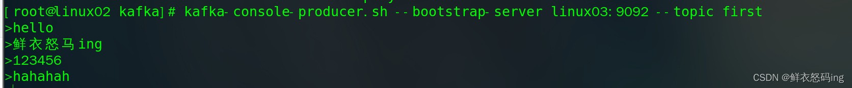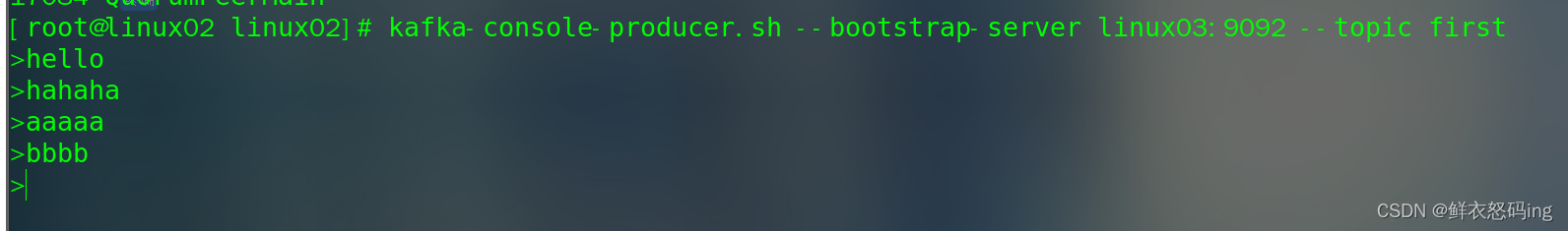 先启动生产者,生产 hello、hahaha,再启动消费者,生产者再生产 aaaaa、bbbb。此时 hello、hahaha 属于历史消息,不会显示,只显示 aaaaa、bbbb,若想显示历史消息,需要如下,此时消息是乱序的: