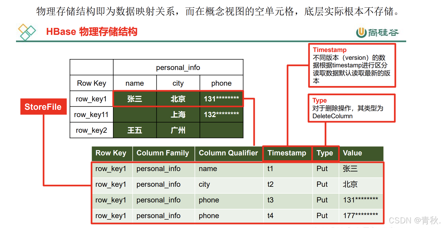 - 稀疏性:空 (null) 列并不占用存储空间,表可以设计的非常稀疏 ;