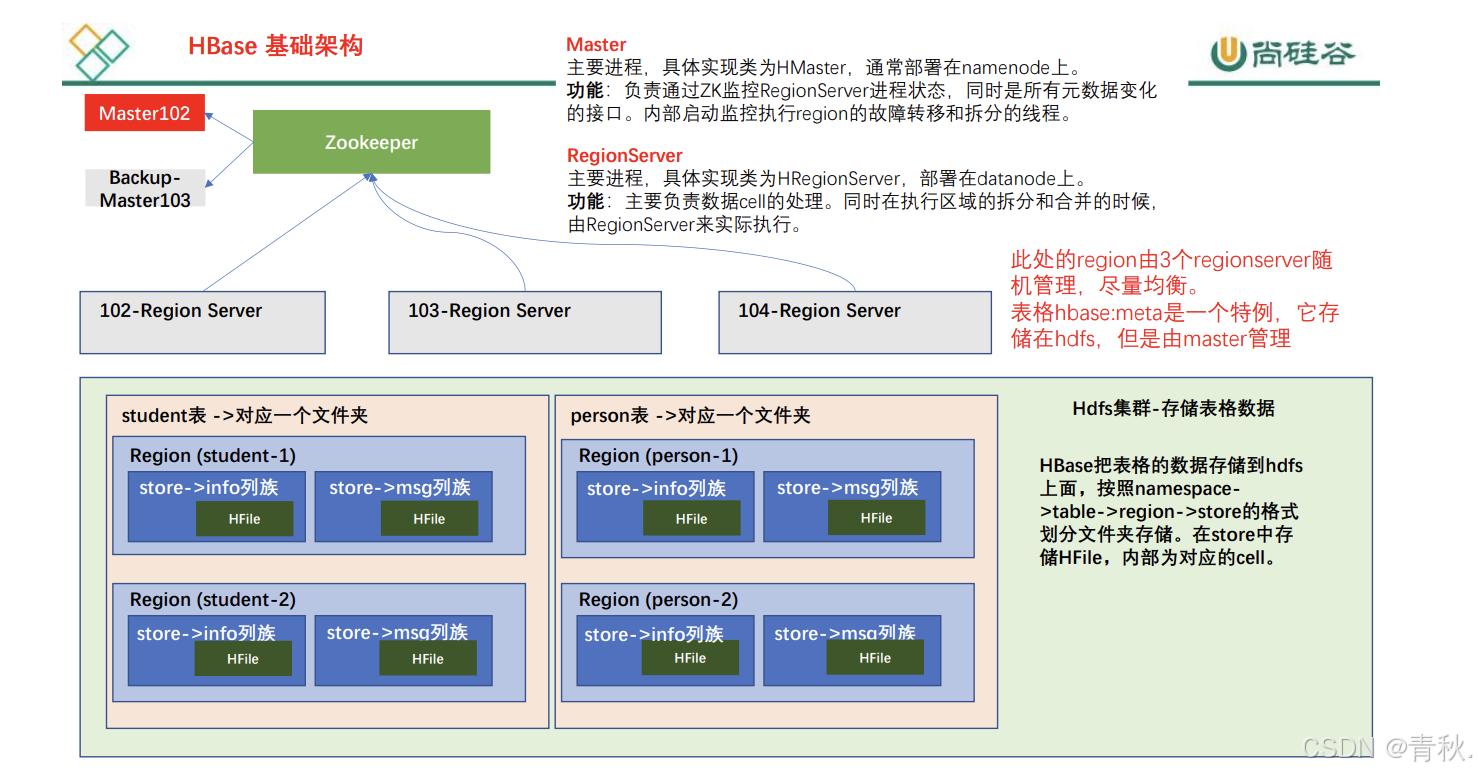 - 存储 HBase 的 Schema,包括有哪些 Table,每个 Table 有哪些 Column Family 等信息;
