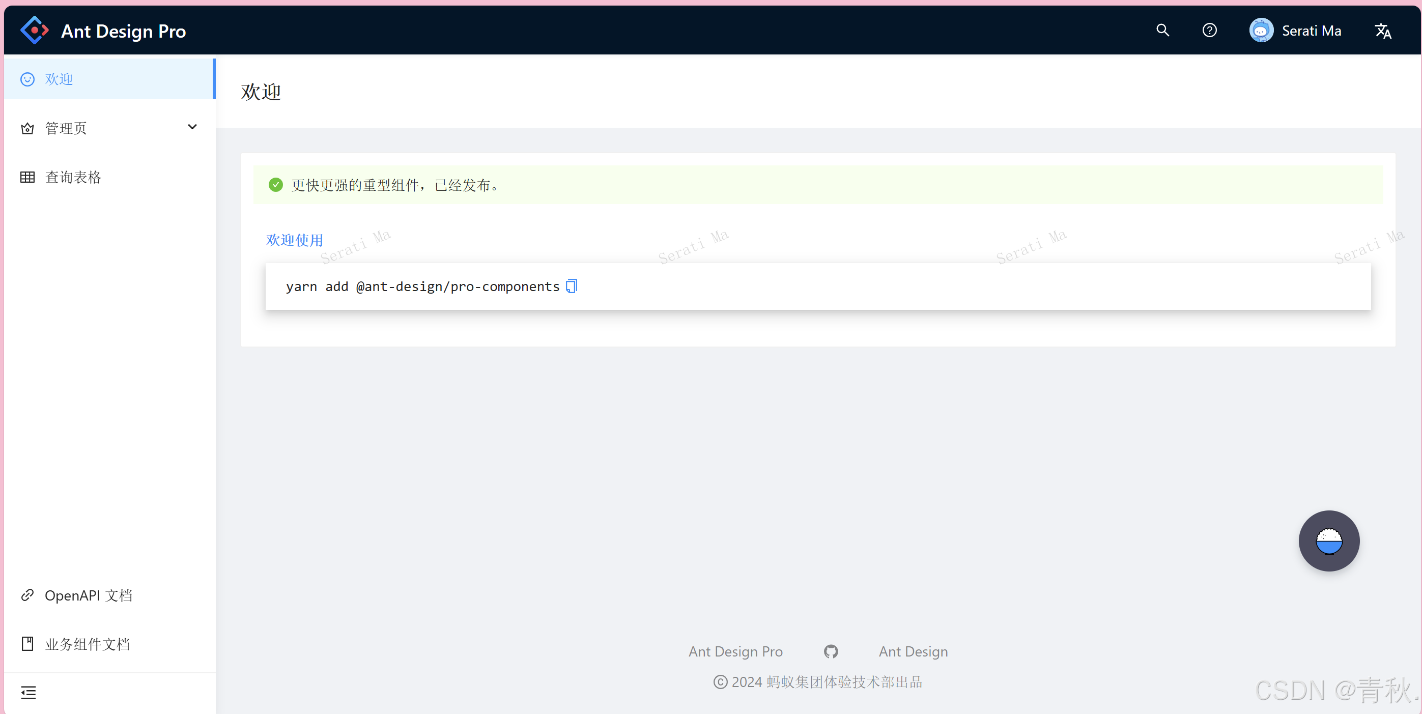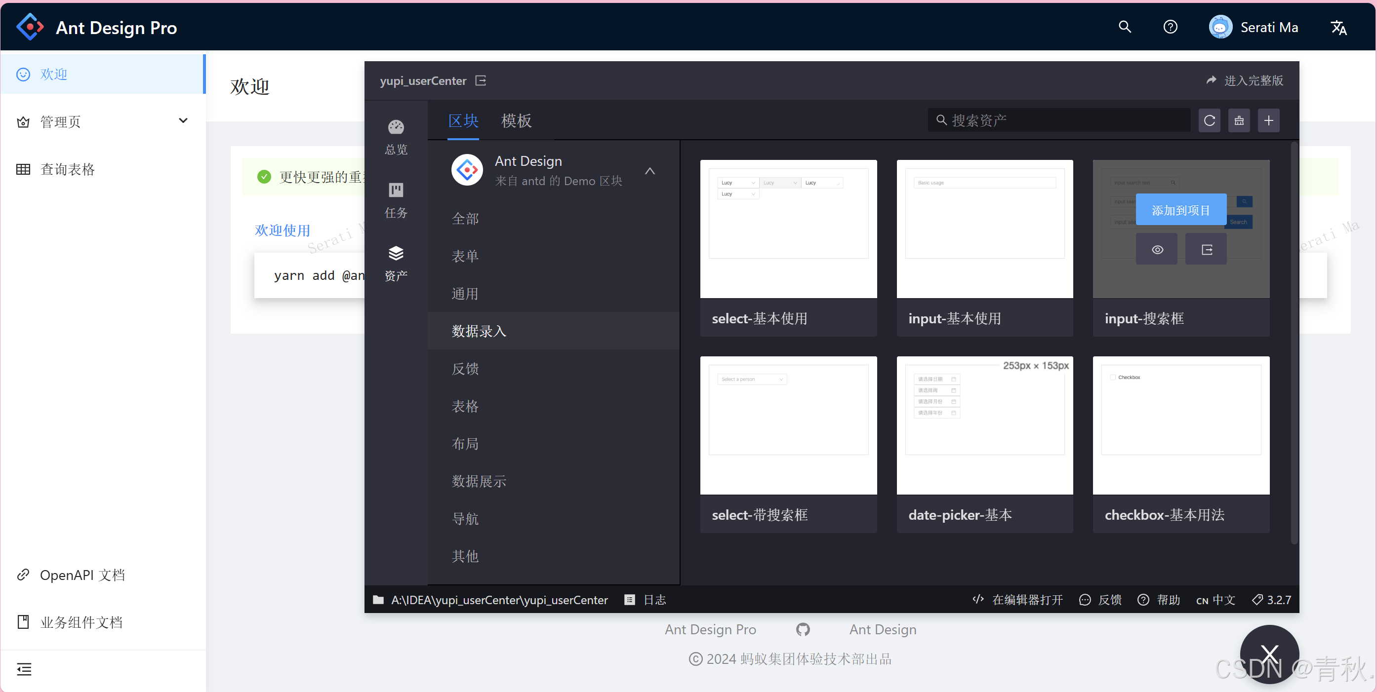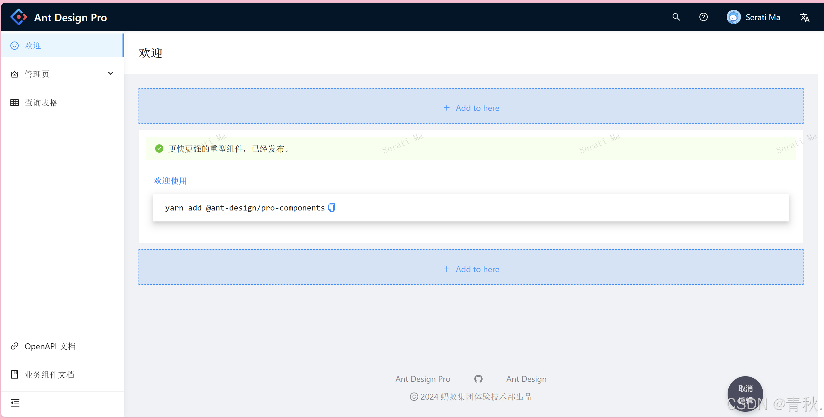 启动 start 脚本,第一次启动可能出错,原因是项目的某些依赖还没有引入,此时只需在控制台运行 yarn 命令,它就会自动下载需要引入的依赖,如图:
