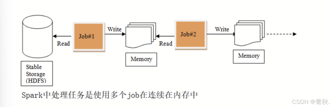 - RDD 具有数据流模型的特点:自动容错、位置感知性调度和可伸缩性。RDD 允许用户在执⾏多个查询时显式地将⼯作集缓存在内存中,后续的查询能够重⽤⼯作集,这极⼤地提升了查询速度。
