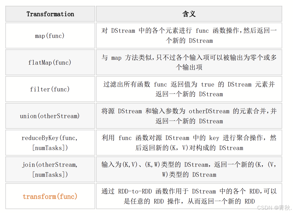 DStream 上的操作与 RDD 的类似,分为以下两种: