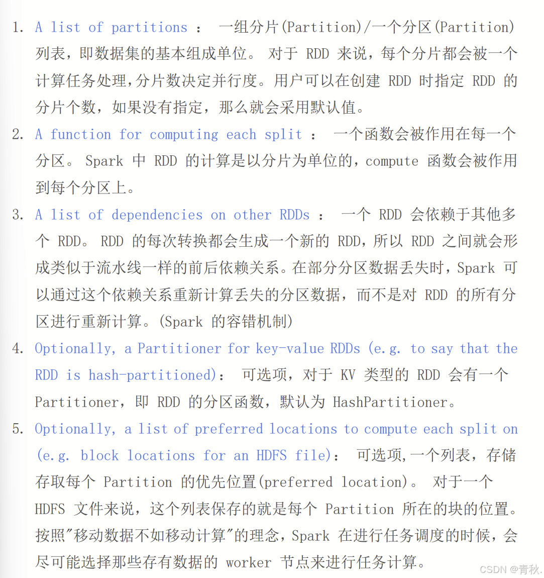 - 容错的弹性:RDD 的血统(Lineag)会记录 RDD 的元数据信息和转换行为 ,当 RDD 的部分分区数据丢失时,它可以根据这些信息来重新运算并恢复丢失的数据分区。