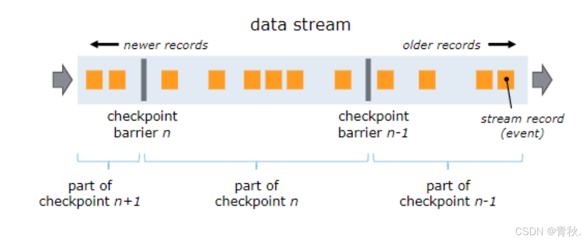 为了使状态具有良好的容错性,Flink 提供了检查点机制 (CheckPoints) 。通过检查点机制, Flink 定期在数据流上生成 checkpoint barrier ,当某个算子收到 barrier 时,即会基于当前状态生成一份快照,然后再将该 barrier 传递到下游算子,下游算子接收到该 barrier 后,也基于当前状态生成一份快照,依次传递直至到最后的 Sink 算子上。当出现异常后,Flink 就可以根据最近的一次的快照数据将所有算子恢复到先前的状态。(Spark 也有 Checkpoint 机制)