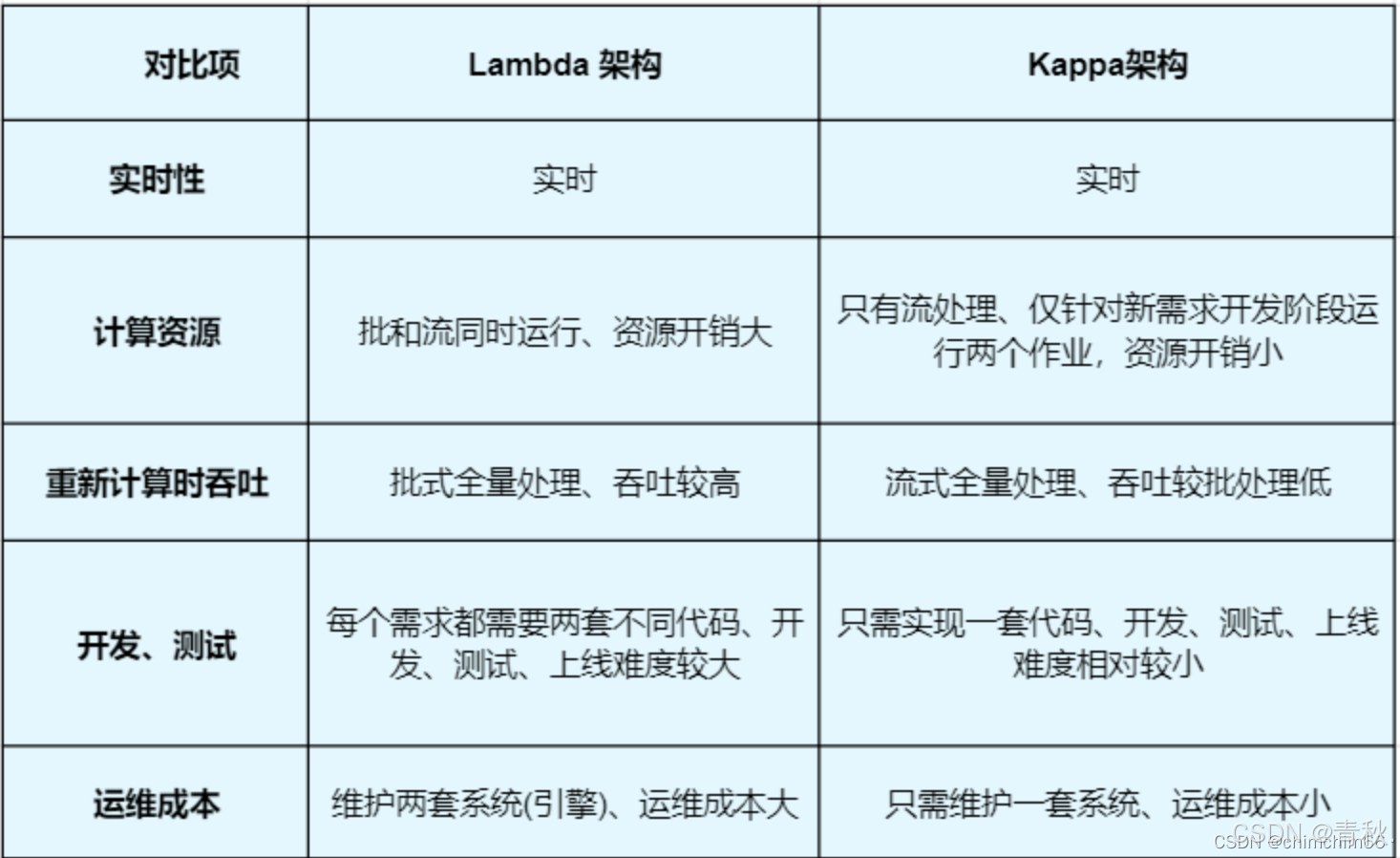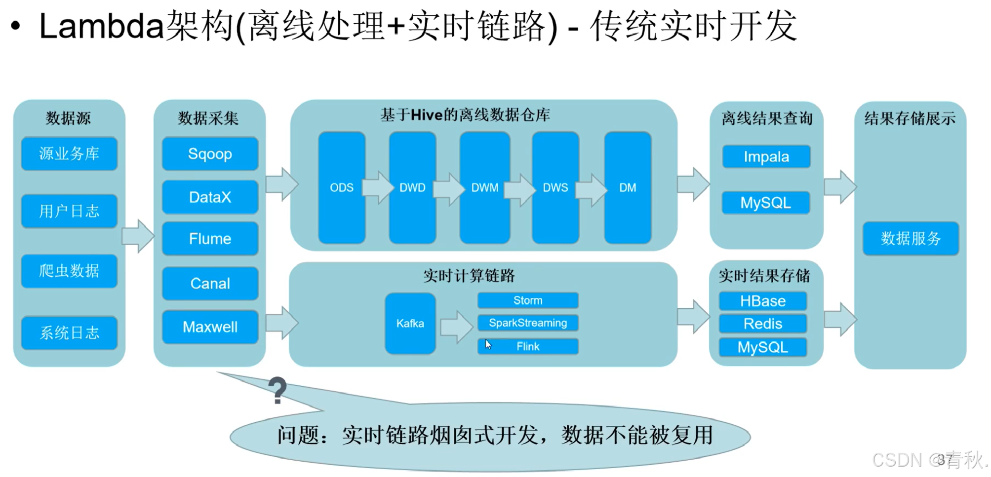 不管是传统的还是升级后的 Lambda 架构,严格来说并**不是纯正的实时数仓,而是离线+实时!**这就导致 Lambda 有如下缺点:
