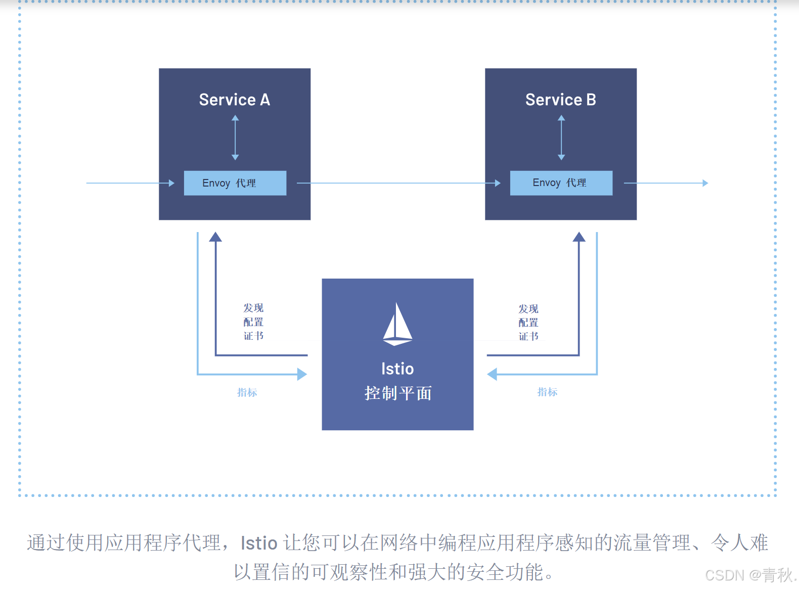 服务网格架构中有两个主要组成部分:控制面板和数据面板。