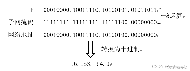 以 16.158.165.91/22 为例 :掩码 22 位,即网络位占 22,主机位占 10