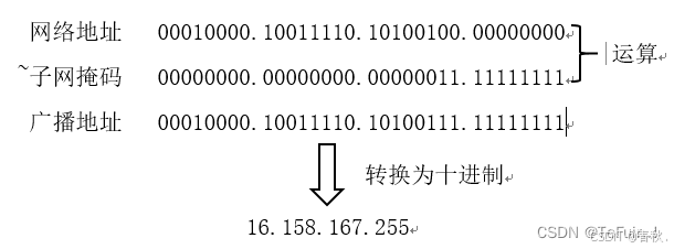 - 也可以将网络地址的网络号不变,主机号全部变 1 取得。
