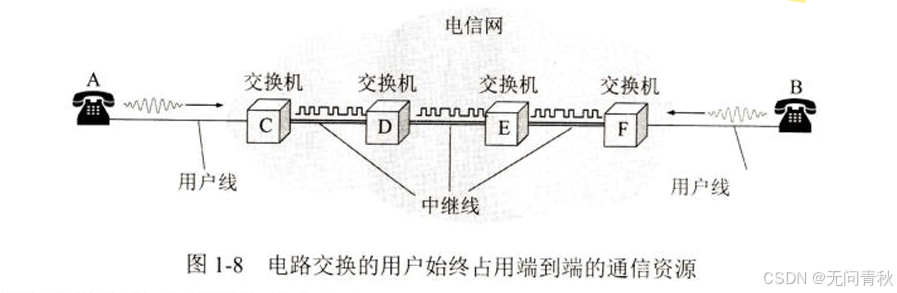 建立连接(占用通信资源)->通话(一直占用通信资源)->释放连接(归还通信资源)。