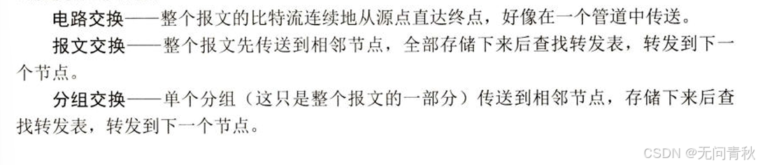 分组交换缺点:分组在路由器转发时需要排队造成了时延,同时也不能确保通信时端到端所需带宽。同时也要携带额外的控制信息。