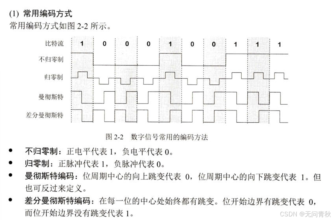 - 基带调制:仅仅对基带信号的波形进行变换,使它能够与信道特性相适应。变换后的信号仍然是基带信号。由于这种基带调制是把数字信号转换为另一种形式的数字信号,因此大家更愿意把这种过程称为编码。