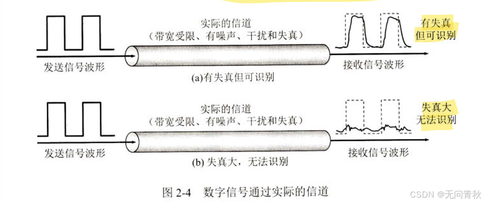码元传输速率越高、信号传输距离越远、噪声干扰越大或媒体传输质量越差,接收端的波形失真越严重。