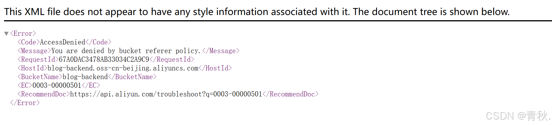 加上防盗链之后我们测试一下,拿着图片 url 在本地浏览器访问,结果如下,因为白名单仅对服务器开放了权限,没有对本地开放,所以本地访问就无权限了