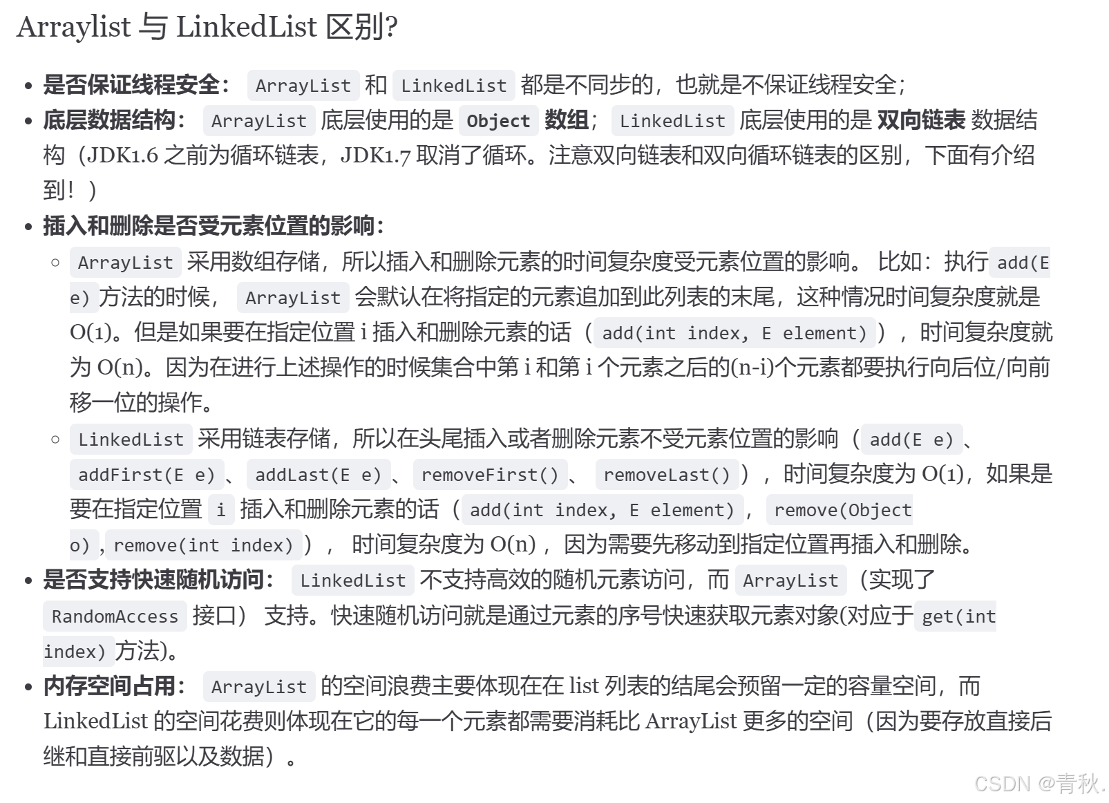 ArrayList 需要一份连续的内存空间。