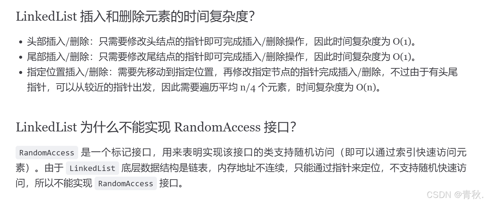 底层采用 Object 数组实现,实现了 RandomAccess 接口因此支持随机访问。插入删除操作效率慢。