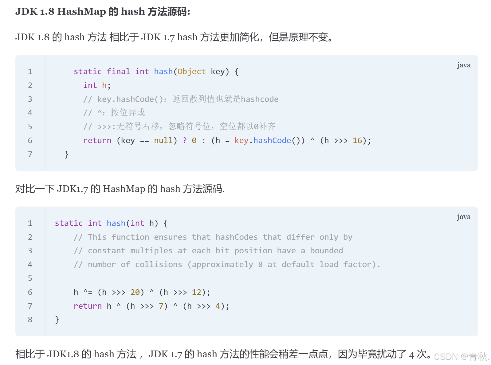- HashMap 可以存储 null 的 key 和 value,但 null 作为键(key 的哈希值为 0)只能有一个,null 作为值可以有多个。