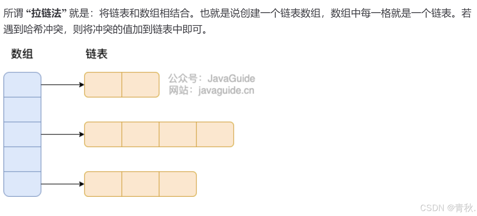 - 解决哈希冲突的方法: _ 链接法:使用链表或其他数据结构来存储冲突的键值对,将它们链接在同一个哈希桶中。 _ 开放寻址法:在哈希表中找到另一个可用的位置来存储冲突的键值对,而不是存储在链表中。常见的开放寻址方法包括线性探测、二次探测和双重散列。 _ 再哈希法:当发生冲突时,使用另一个哈希函数再次计算键的哈希值,直到找到一个空槽来存诸键值对。 _ 哈希桶扩容:当哈希冲突过多时,可以动态地扩大哈希桶的数量,重新分配键值对,以减少冲突的概率。