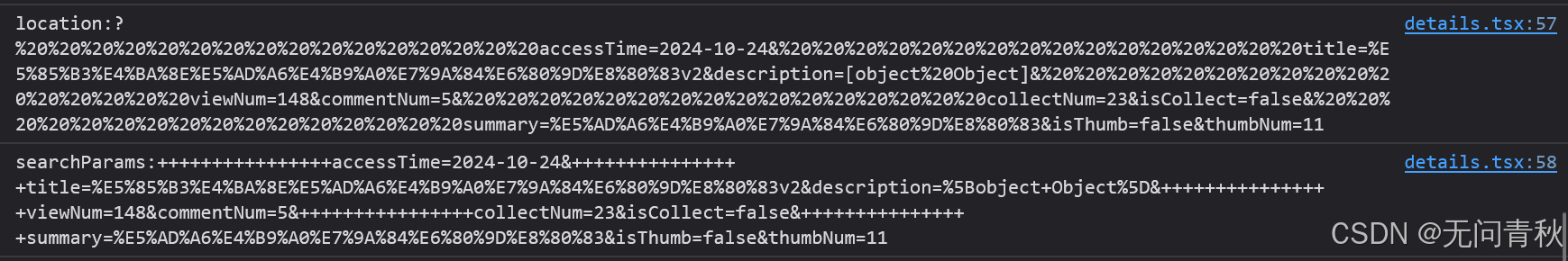 在 location.search 中,有很多连续的 %20(空格的编码形式)。这些多余的空格可能来源于 URL 中的多余空格或错误的拼接,通常不应该在 URL 参数中出现。
