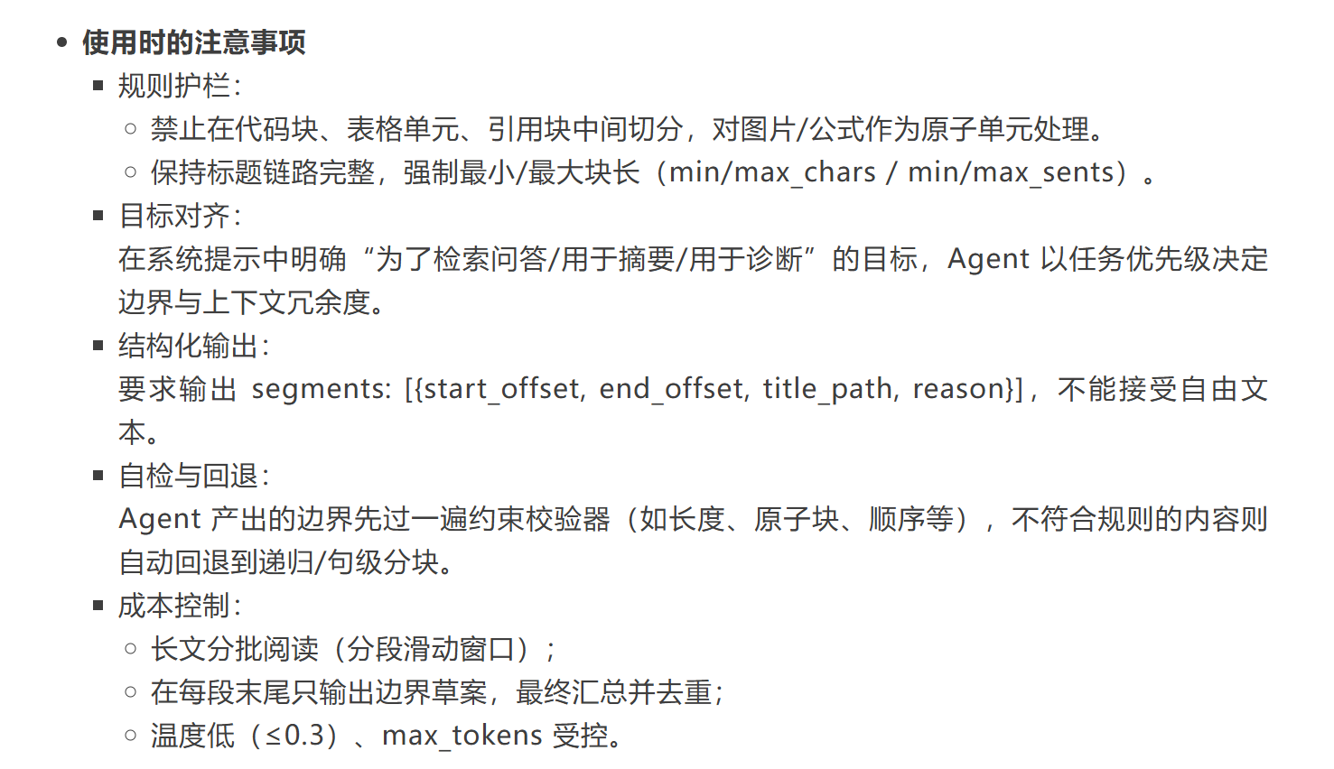 - 尊重自然语义边界(段落、标题、列表、代码块等)