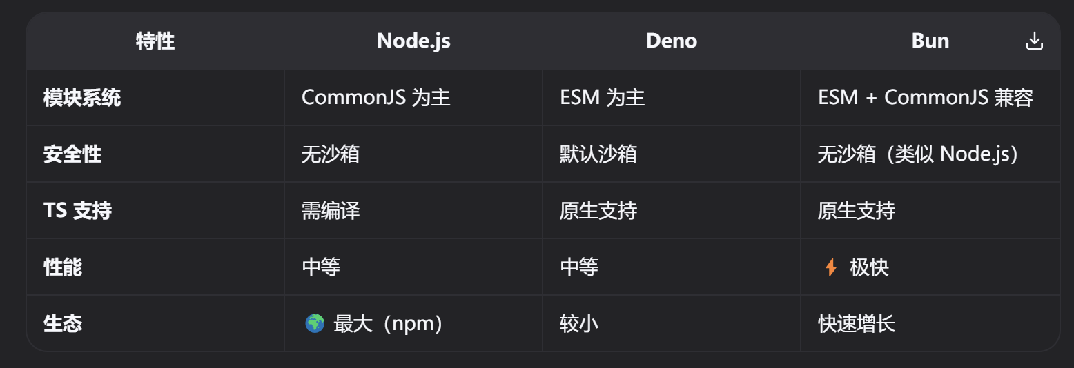 Bun 同时兼容 NestJS、Koa、Express、Fastify 框架,而 Deno 不兼容