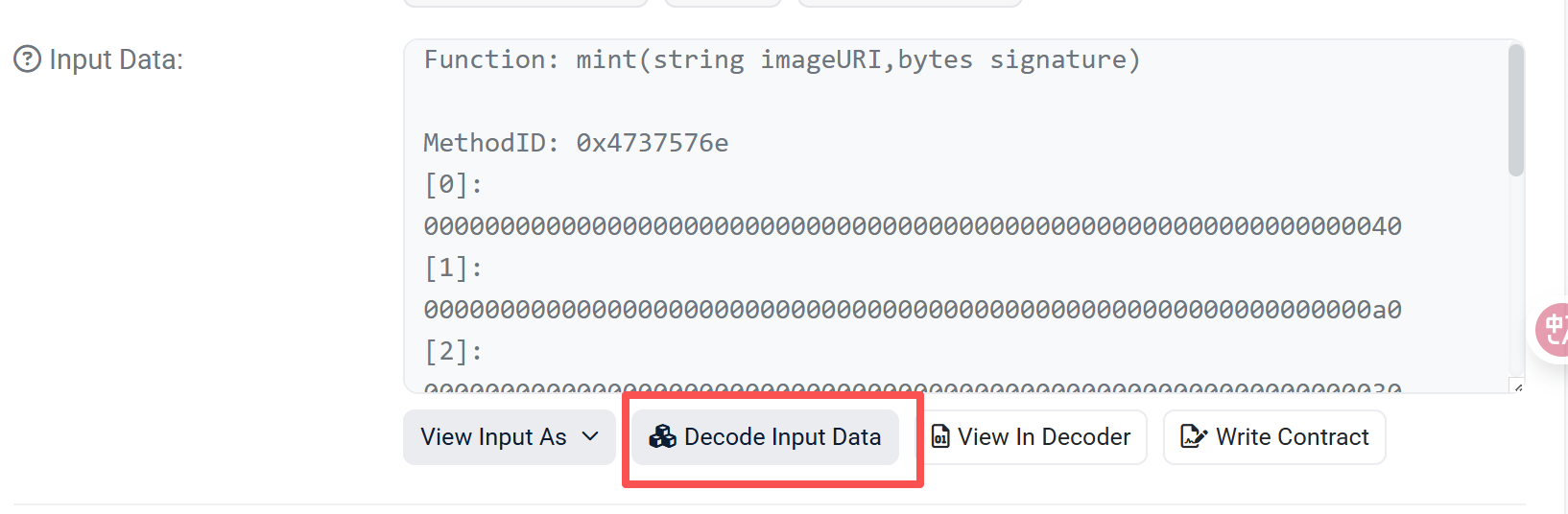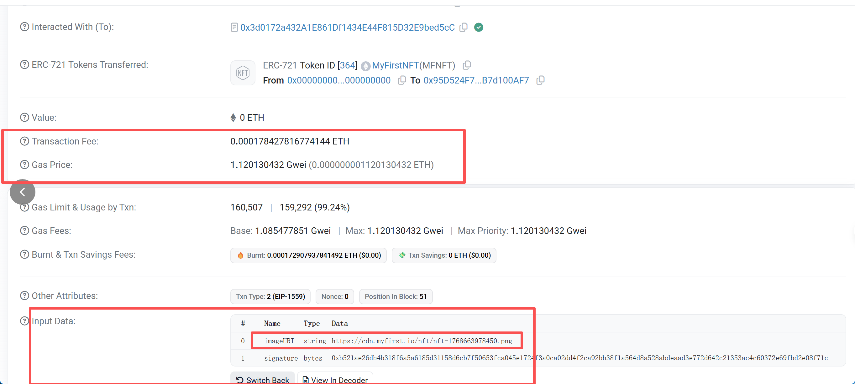 如果要查看 NFT 具体内容,可以点击 Input Data 的 view in decoder