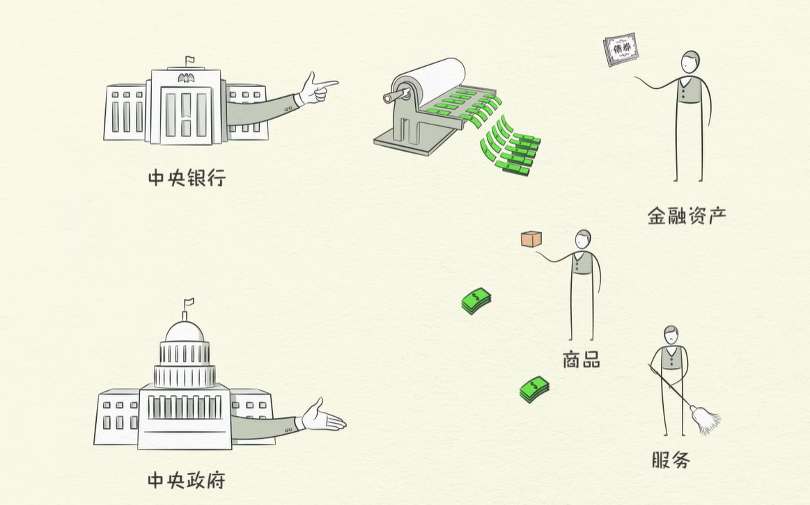 中央银行通过发行货币,购买金融资产,帮助推升资产价格。但是央行只能买金融资产,不能直接给普通老百姓发钱吧,老百姓没有金融资产咋办呢?