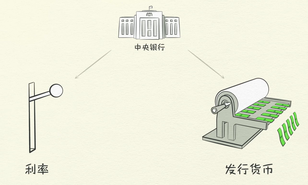 中央银行在通货膨胀时会提高利率,使得借贷减少,进而减少支出,减少收入,经济就会进入衰退,通货膨胀就解决了,然后中央银行再降低利率,使得借贷增加,经济扩张。