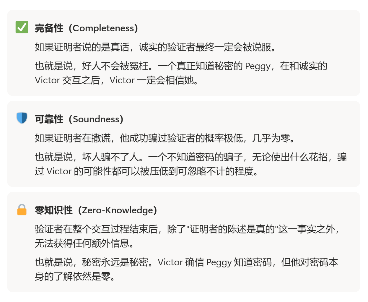 为了确保证明者并不是偶然盲目猜对答案的,验证者会多次来提问,证明者造假的可能性会极大的降低,直到最终验证者满意。