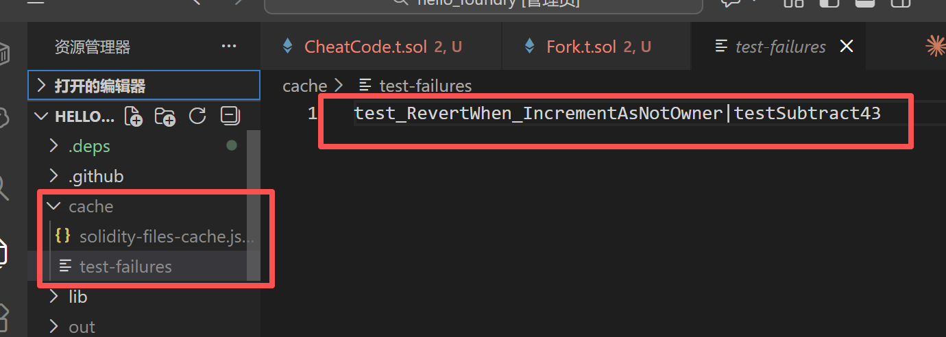 失败的测试会写入 ~/.foundry/cache/test-failures 文件。每次执行 forge test 时,该文件都会更新,因此它反映了上次运行的失败。