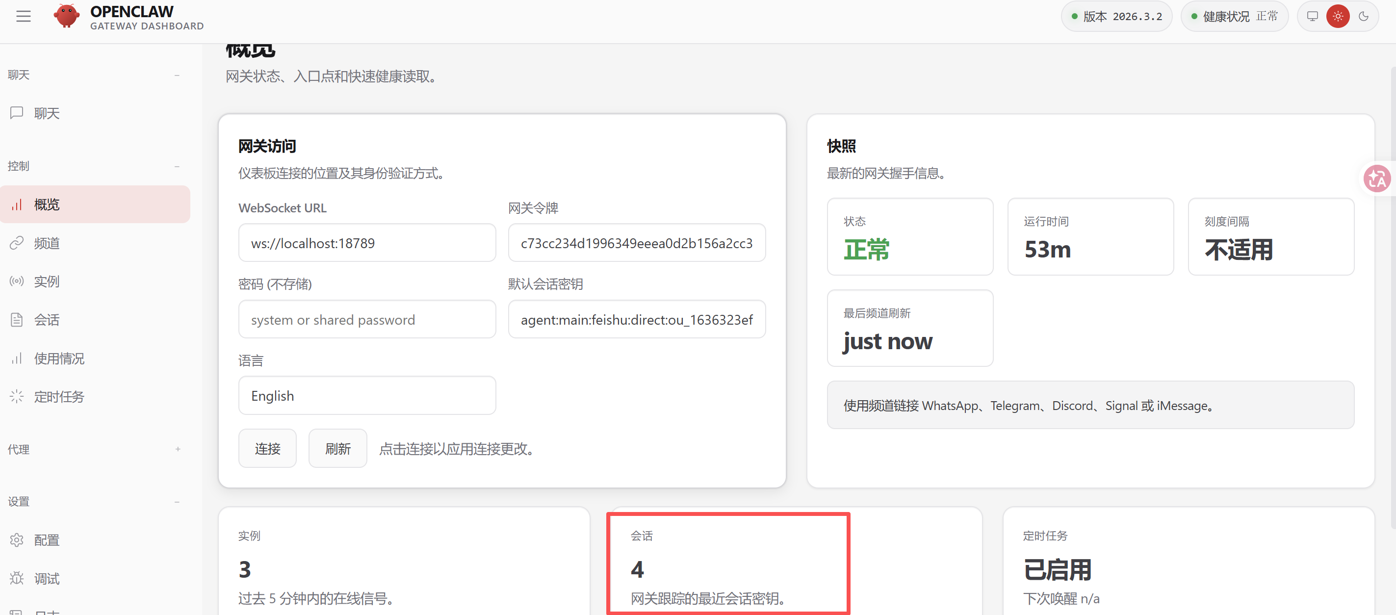 然后输入密码,即可浏览器通过localhost:18789访问,这样更安全